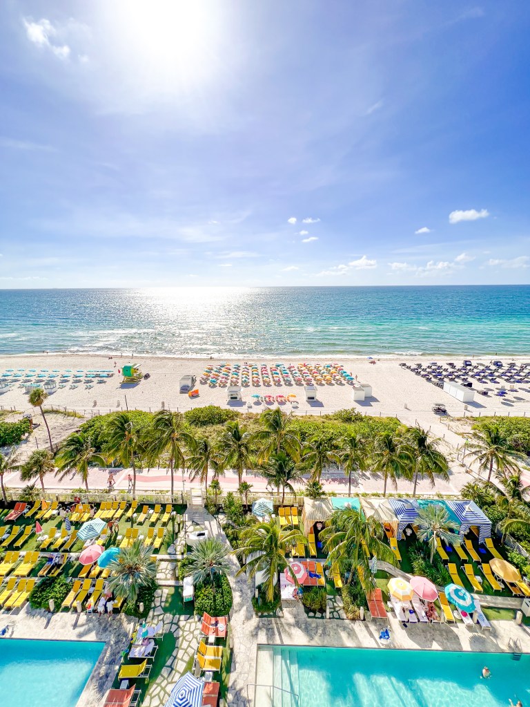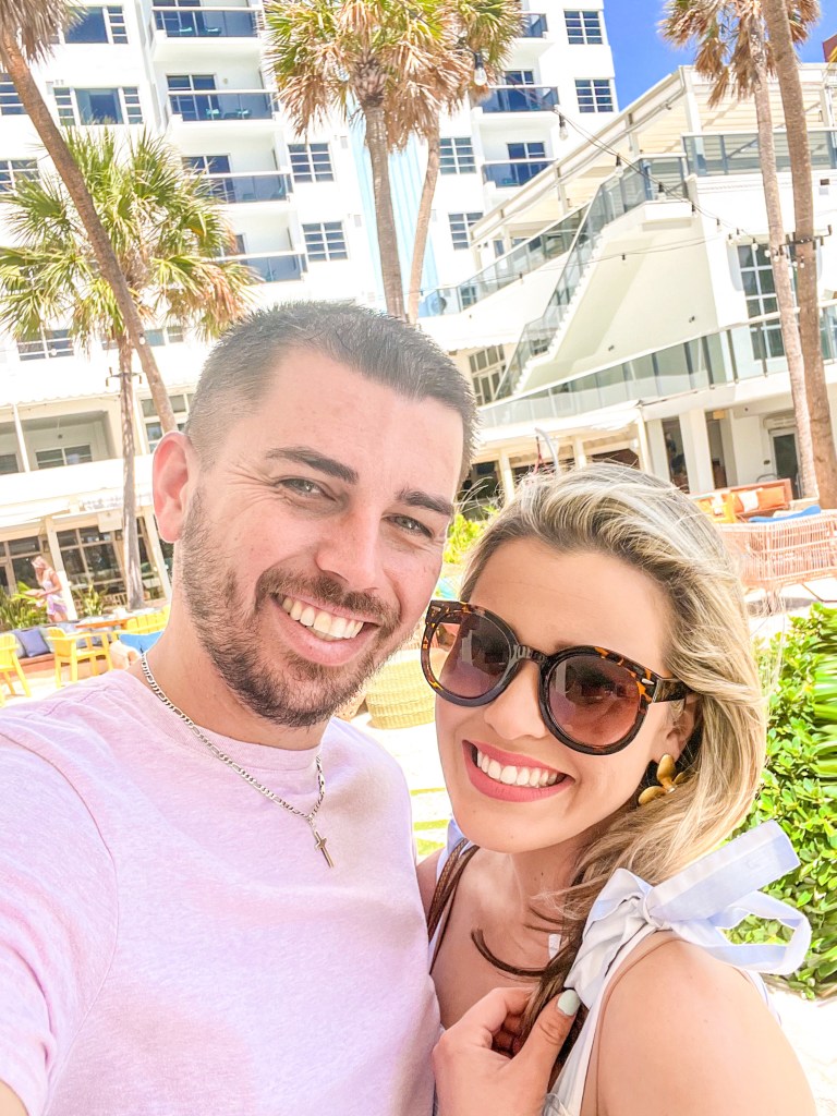 So, a couple of weekends ago hubby and I went to stay at the Confidante Hotel in sunny Miami Beach, FL! We always try to take a mini staycation every now and then to refresh and to recharge our batteries. We have stayed at this hotel with some of our best friends before about a year and a half ago and loved the property, but in my opinion, what makes your stay here a little bit better is to get an upgraded room to either a deluxe ocean view or suite (make sure they all have a balcony, you will have a way better experience). Since we only stayed for one night, we splurged a little more on a room and got the King Bed Ocean front (Lounge Deck) Room. If you are celebrating something special this room is the one to get if it’s available!