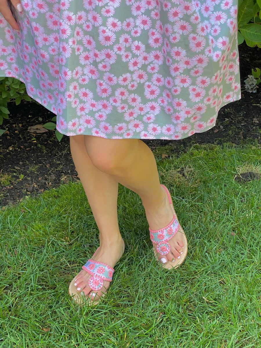 Patricia from Piqued PR connected the both of us, which in my opinion is a match made in heaven! Susan’s brand plus Palm Beach Sandals just went together perfectly! To start this collab, Susan sent over four different fabrics from her new line and then matched each print with a leather color that complimented each of them.