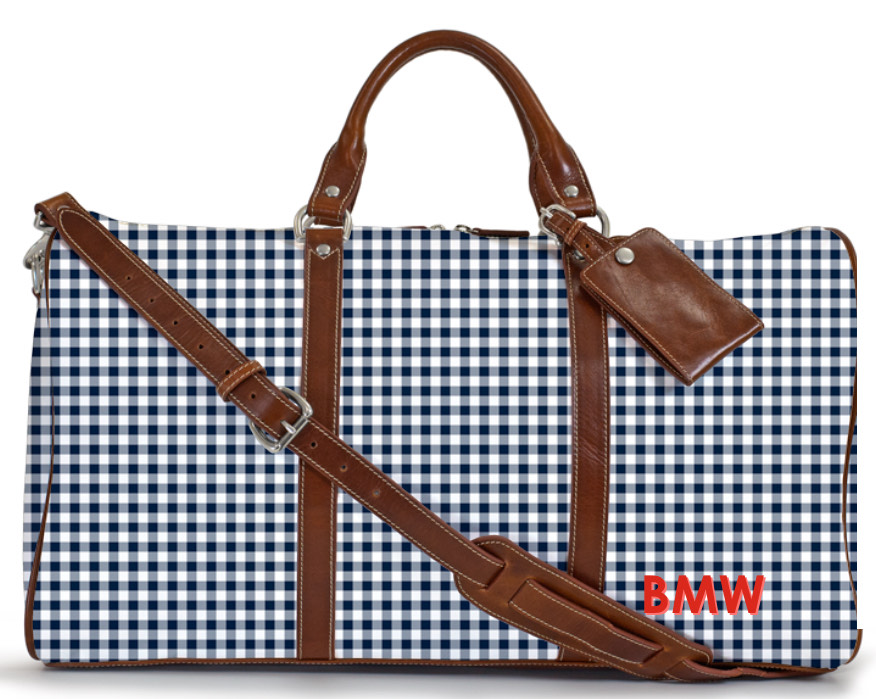 Leather – British Tan | Patterns – New Navy Gingham | Colors – Lipstick Rose